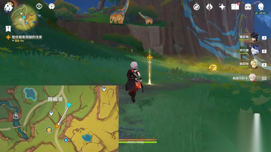 【向着迷烟飘往之处】 1.调查线索 传送隆崛坡南方向锚点,往地图的西南方向走 ▶前往河道边,与茜特菈莉对话2分钟;