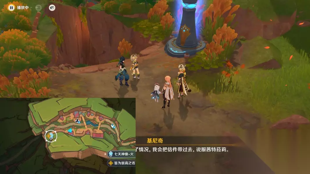 7.前往茜特菈莉找到的营地 传送秘境-蕴火的幽墟,往地图的南方向走,与茜特菈莉对话