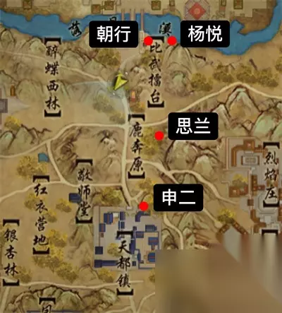 Tips:该奇遇分两个支线,选择【思兰】的药方线(需要购买药方材料)完成后【思兰】会额外给一个【六炉金龙丹】。 选择【申二】直接剜肉的支线只给宠物。 1、触发后对话【杨悦】,在擂台附近找NPC【朝行】,在旁边摊子处,可以使用插件加焦点。 2、去鹿奔原的奔字右侧找【思兰】,【思兰】会给一个药方,并且提出让你去找【申二】问问是否有其他救治方法。 (千万!千万!千万!这时候别去找申二对话,否则会直接跳过思兰线,买了药也没用了,这时候直接对话完思兰就去买药!) 3.对话【申二】会给一把小刀。 4.【思兰】和【申二】依次对话完后,可选择直接使用小刀或根据药方准备材料去找【思兰】开启分支。(现在已不会跳过思兰线)