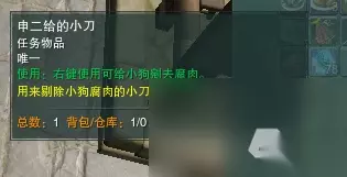 截元丹买这个图标的,另外一个图标的截元丹系统不识别。 金针影/烟买使用等级20级的那个。 3、收集齐药方上的材料后,回去找【思兰】救母狗,大的小的都能活,对话完成后思兰会给一颗【六炉金龙丹】 做为回报。 4、完成后直接回到奇遇触发点与【杨悦】对话即可完成该奇遇。 申二线: 1、按照【思兰】的要求去找【申二】获得小刀后,直接在【申二】身边使用小刀,读条完成后会给你一窝小狗崽。
