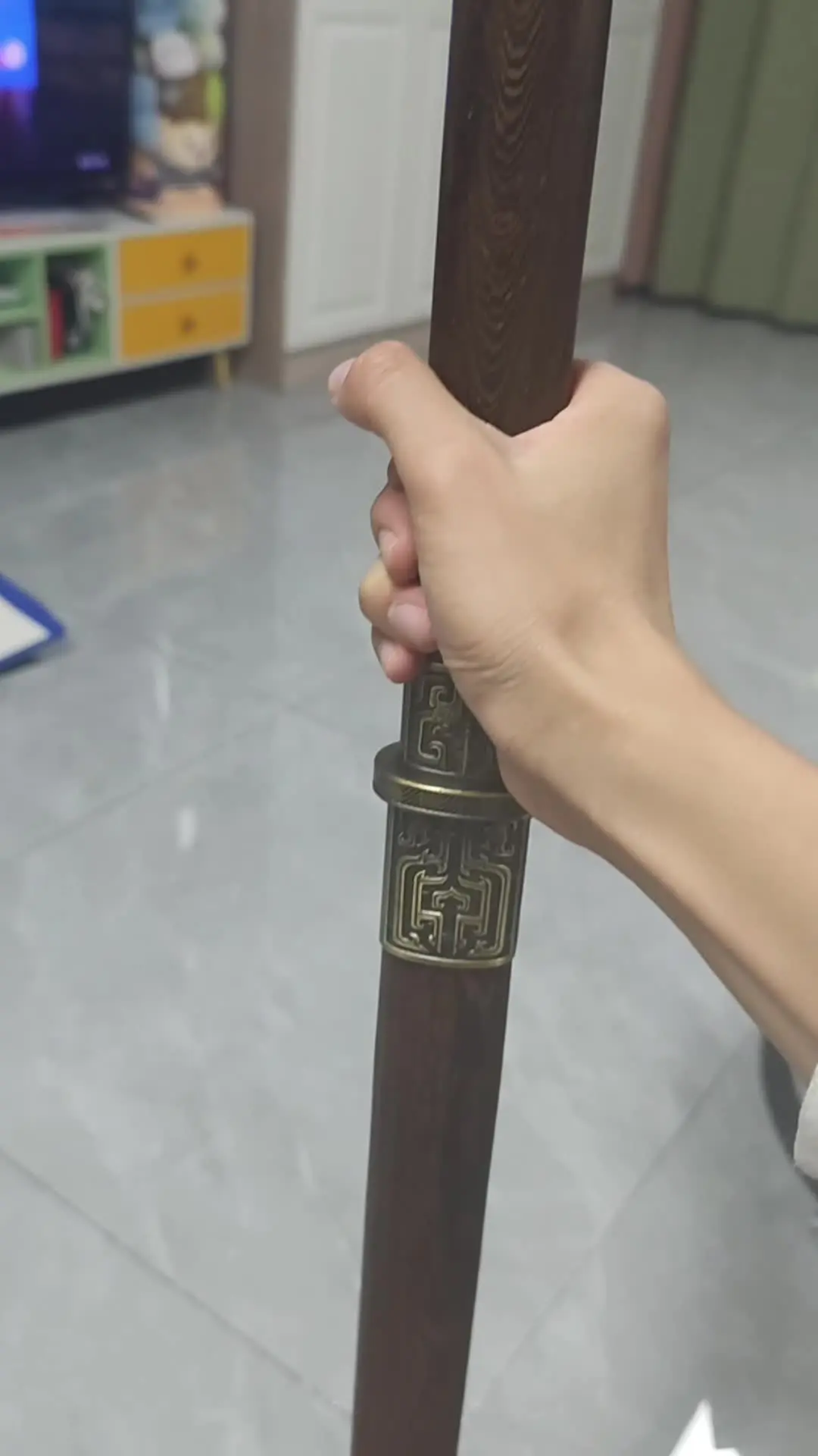 这是一款充满中国风的传统宝剑,剑装具雕刻精致的龙纹与云纹,剑鞘、剑柄做工考究,尽显中式刀剑的古典韵味,契合一人一马一剑走江湖的武侠情怀。