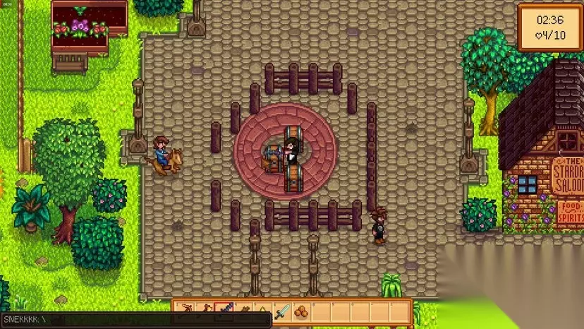 而在镇子中部,玩家可以寻找到的村民npc有:村长、护士、医生、种子店长一家三口、住在房车中的潘妮、艾米丽姐妹,艾米丽姐妹的隔壁是有四个村民的,分别是:巴士大妈、酒保大叔、博物馆爷爷以及铁匠。