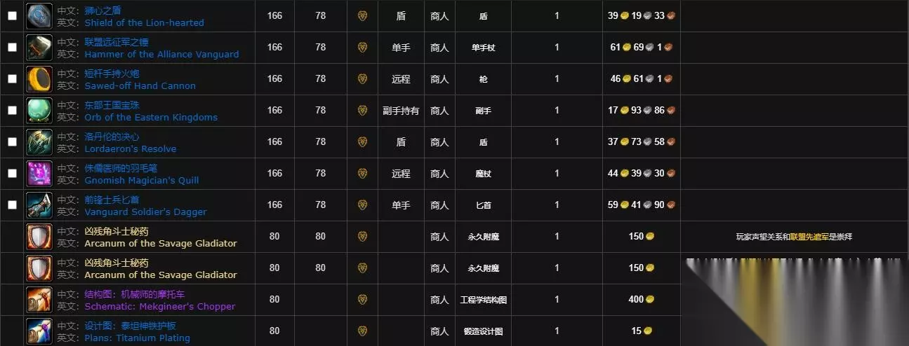3、以下是联盟先遣军军需官可兑换物品。