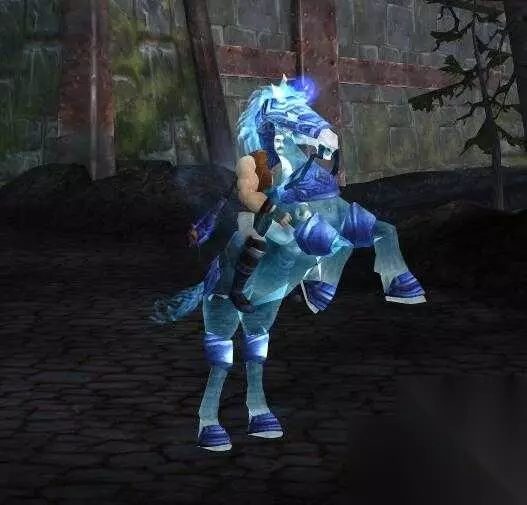 都是陆地坐骑,不能飞,它们是一种不太清澈的透明状态,如果站在颜色鲜艳的墙边可以清楚地看出来是透明的,比如这样,可以隔着马脖子看到另一条腿、骑乘者的脸: