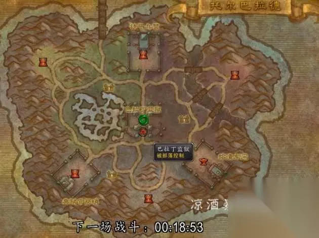 所以你每天只需要来一趟托尔巴拉德北岛,做一下这6个日常任务,每天10分钟,就可以获得6个托尔巴拉德奖章。 那么坐骑需要多少个奖章呢? 鬼灵坐骑:165个 麻将龙:200个 探照灯玩具:40个。 也就是说,如果我们每天只做北岛的日常,做出来鬼灵坐骑需要28天!整整四周啊!可是我标题不是说两周就行吗? 这里就要说说托尔巴拉德南岛了,前面有说过,托尔巴拉德分为北岛和南岛两个区域。 托尔巴拉德南岛和诺森德的冬拥湖很类似,每隔一段时间开始一波攻防,胜利方会占领南岛1个小时,在这1个小时里胜利方可以在南岛做日常任务,也可以去打位于南岛中心的“巴拉丁监狱”团本,获得一些装备,和冬拥湖那个宝库很像。 当你位于北岛的时候打开南岛地图就可以看到当前南岛被哪一边占领了,比如现在,南岛被部落占领,而下一次攻防将在18分钟后开始: