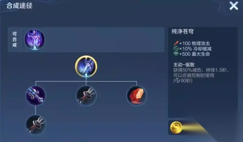出纯净苍穹的时机不固定,要跟着对局节奏调整。不过大多数情况下都是在中期出,也就是对局进行到8到12分钟。它的合成路径相当平滑,先出速击之枪提升攻速,再补铁棘刺合成完整装备。到了对局后期,也就是15分钟之后,纯净苍穹则会成为射手们的保命补装首选。这个阶段敌方刺客的装备已经完全成型,脆皮射手随时面临被开的风险。此时在核心输出装之后补上纯净苍穹,就能在被切入的瞬间开启技能,配合闪现或创造反打窗口。很多高手射手还会搭配复活甲使用,复活甲触发后秒换苍穹。残血状态下也能继续规避伤害,大幅提升在团战里的容错率。不至于被敌方一套技能直接带走,为队友创造翻盘的机会。