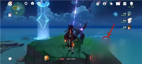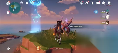 召唤雷种子之后,连续点击下图所示的图标(PS:电脑端连续按“T键”),【使用雷极】抵达恒常机关阵列副本的传送门入口。(PS:考虑到附近没有传送的锚点,建议自己在雷种子那里安放一个自制的传送点,这样刷起来也方便。)