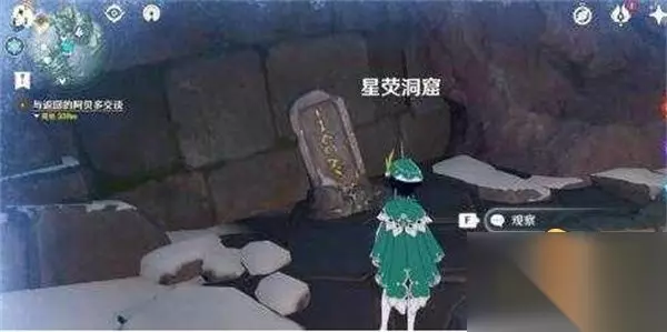 5、第五个石碑 我们来到星荧洞窟左边的传送点,有个方形场地,破完机关在左下角石墙下即可看到第五个石碑。