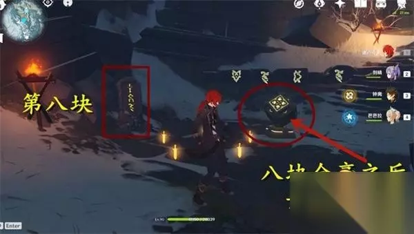 8、第八个石碑 我们需解锁第三个坚冰碎片,碎片的位置在星荧洞窟下方,找齐附近仙灵即可解开边上屏障。