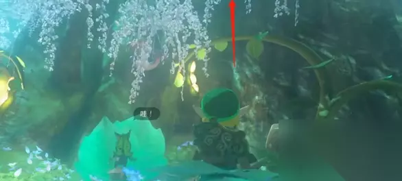 三、上去后我们按照图中箭头知识的方向,向上攀爬,就能够在树顶上找到森民之剑了。
