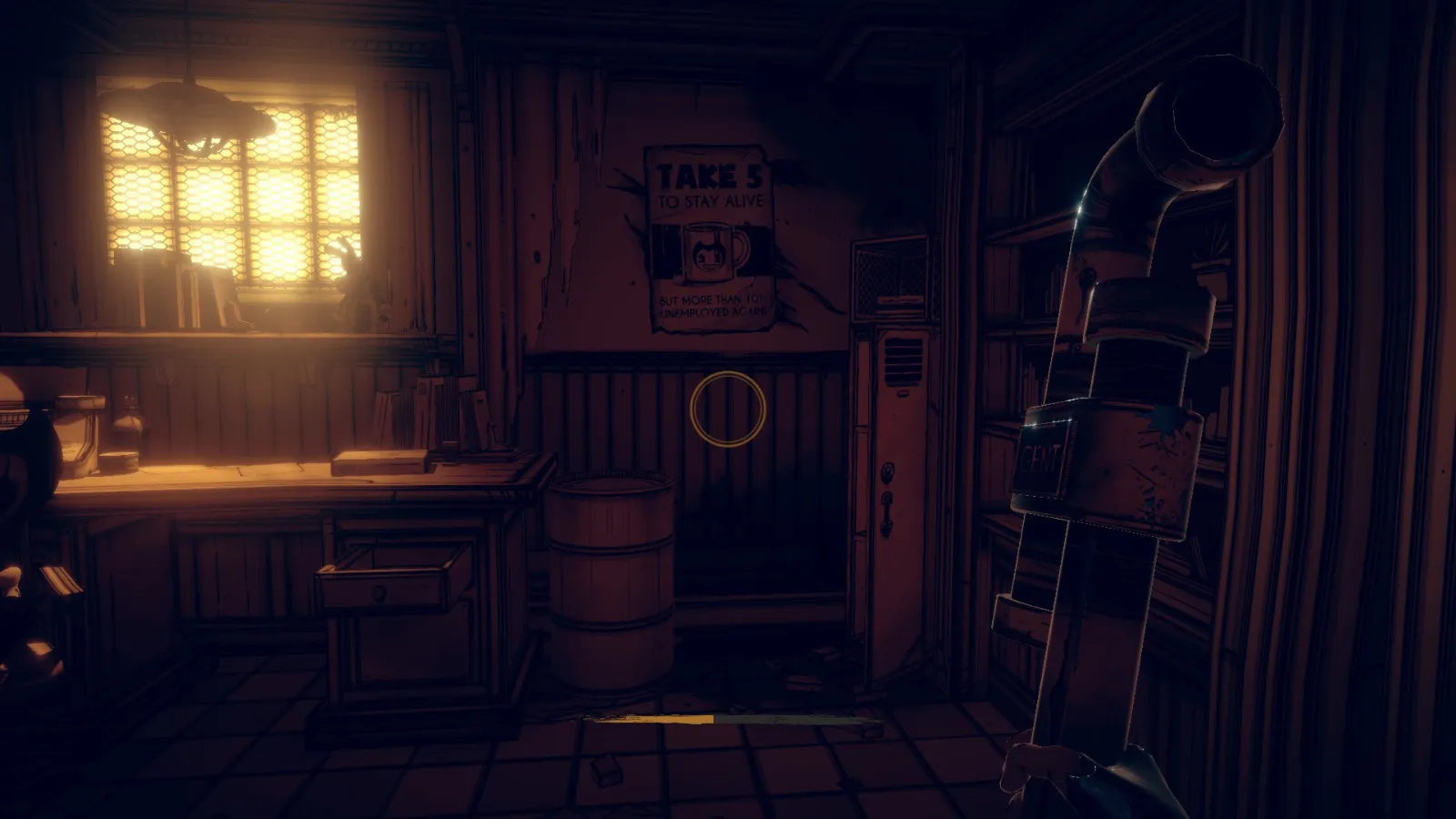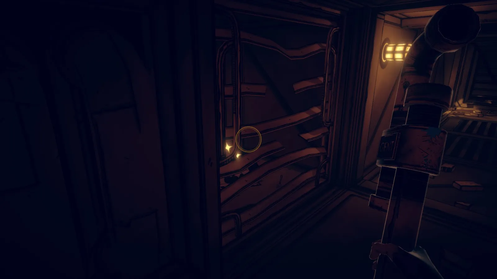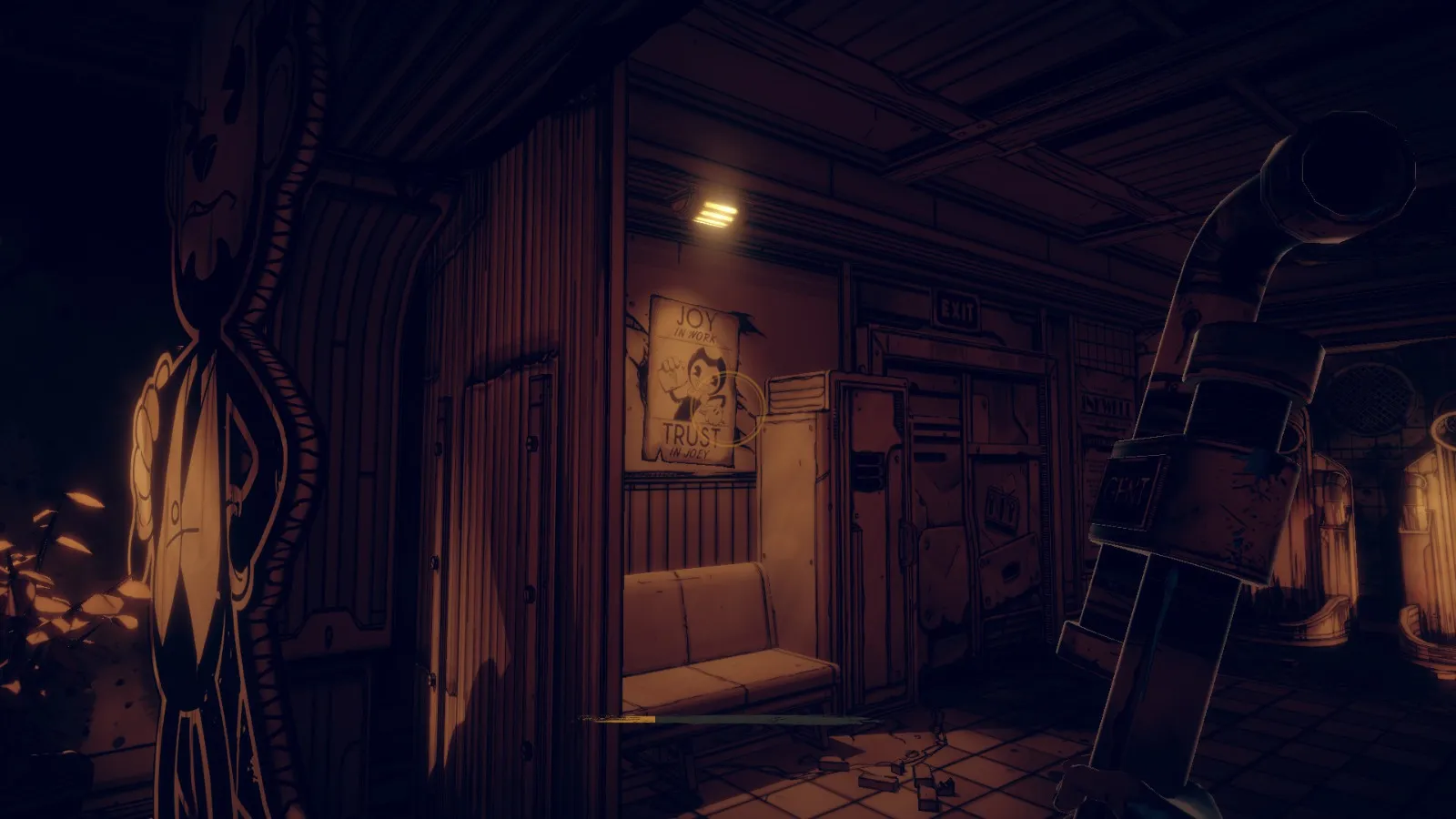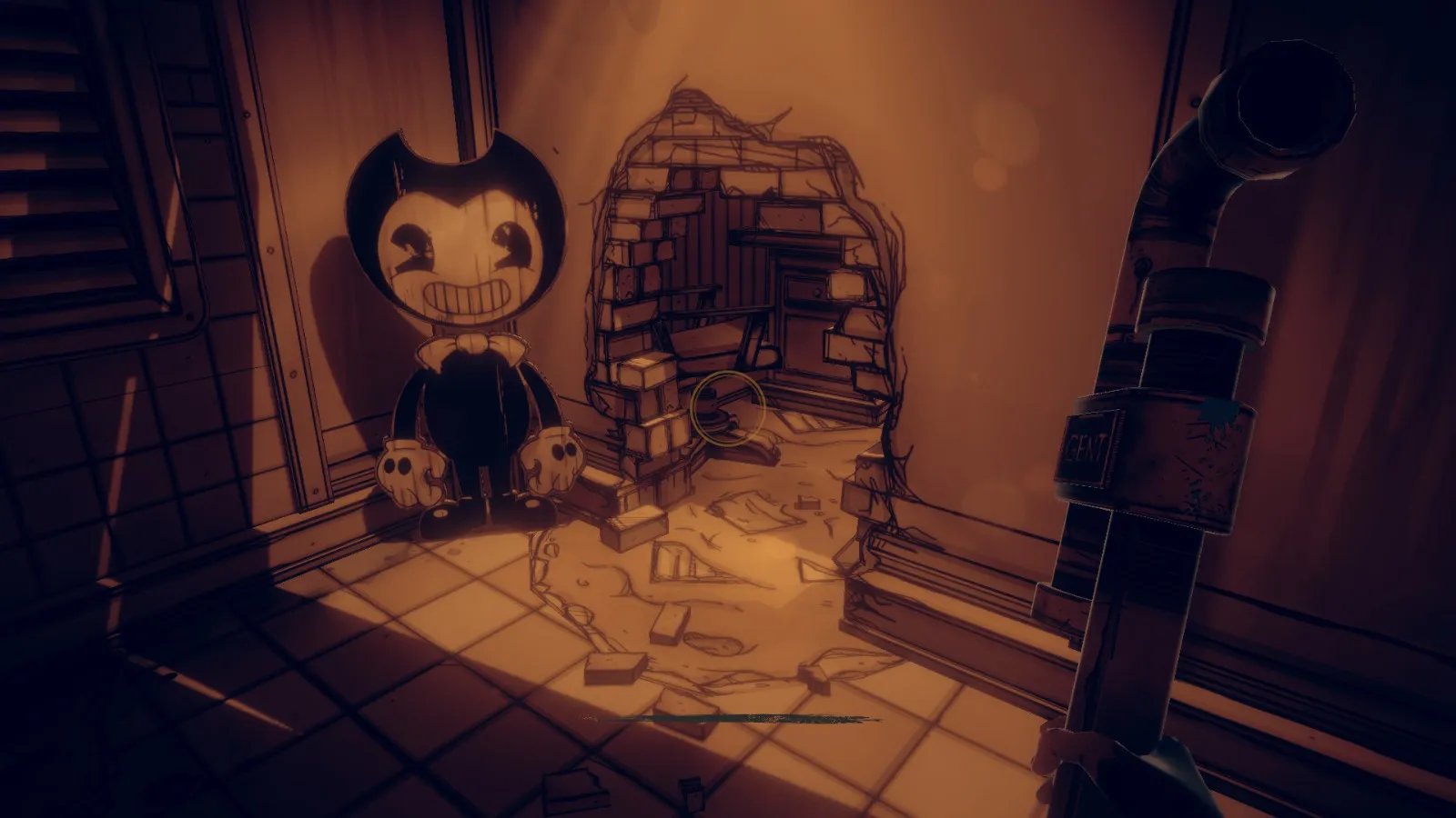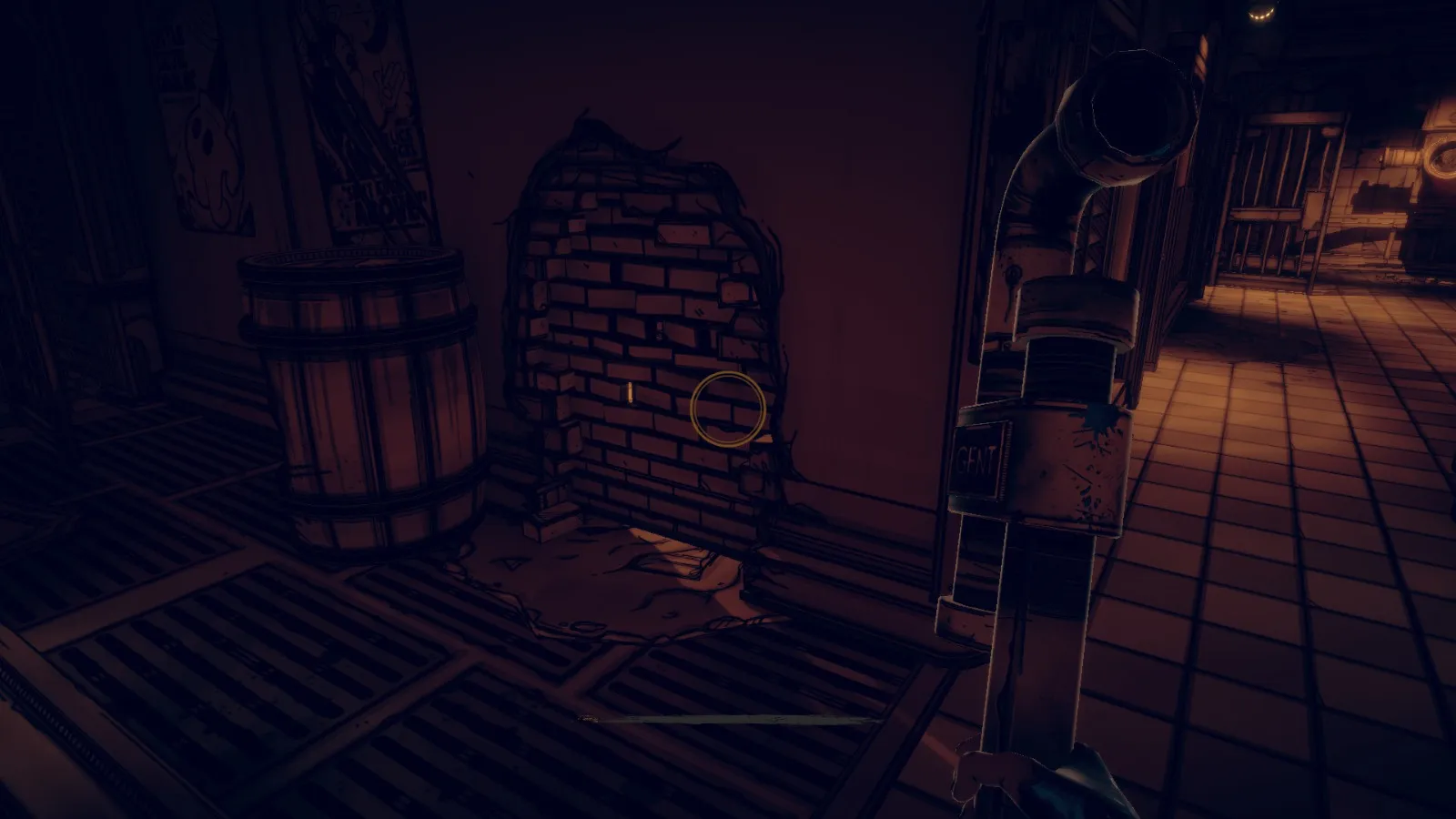 现在从 Bendy 立牌旁边的洞(你找到备忘录 11 的地方)重新进入房间。