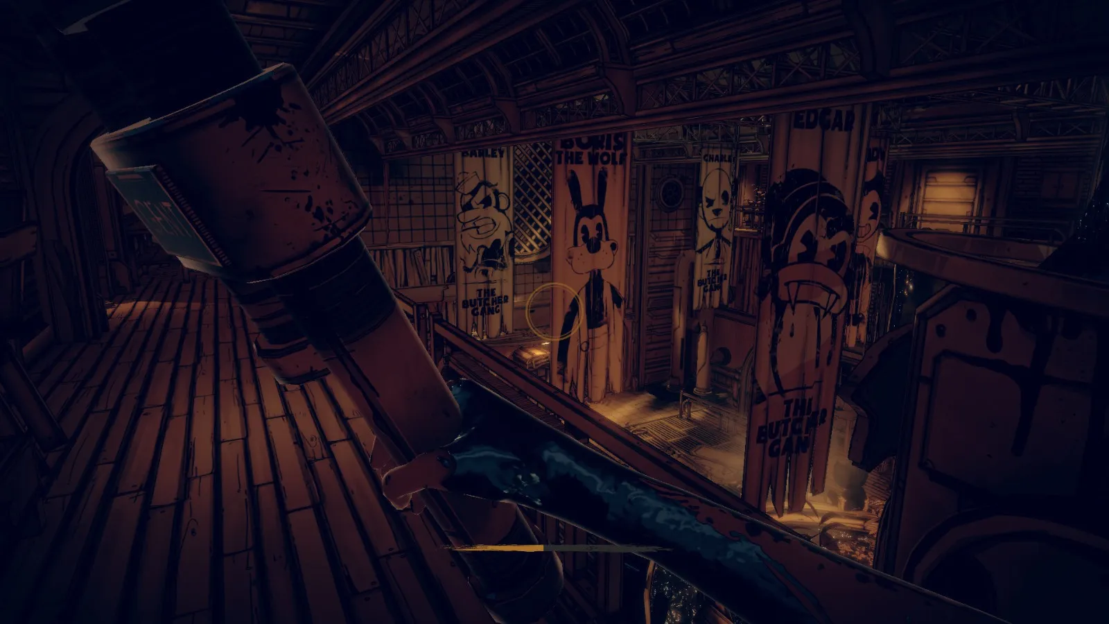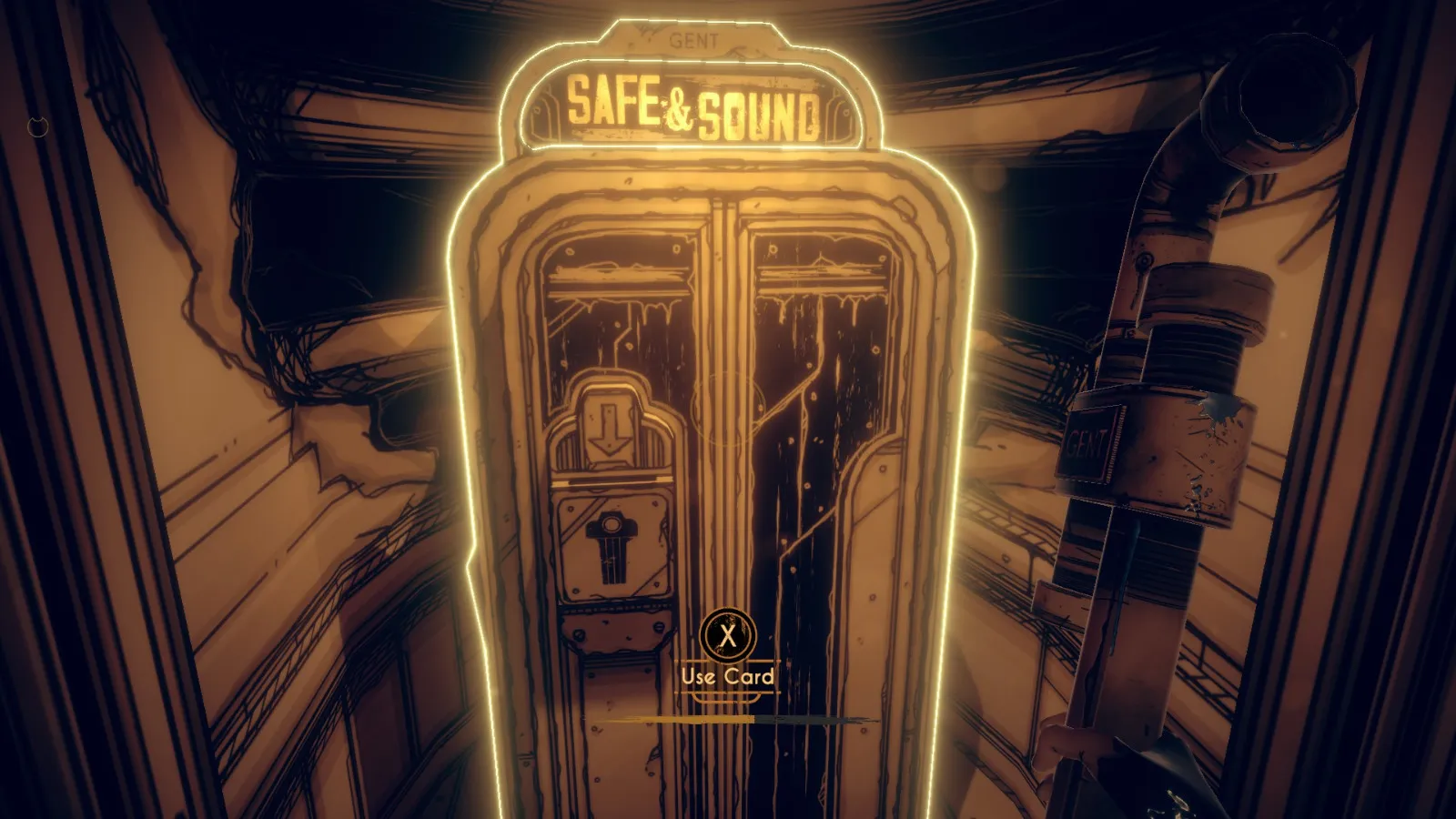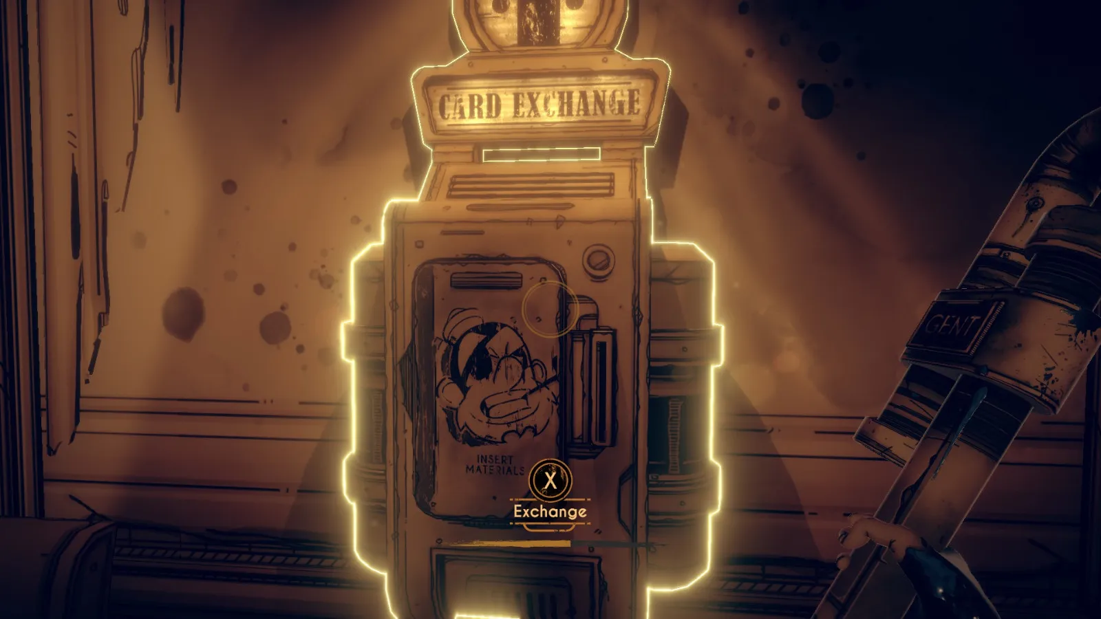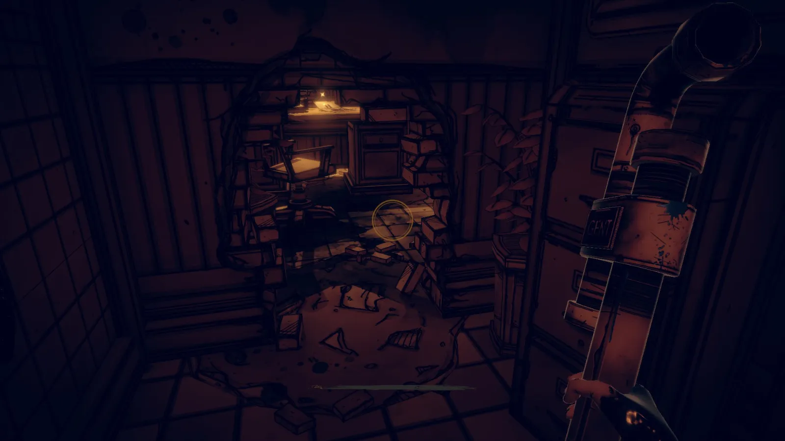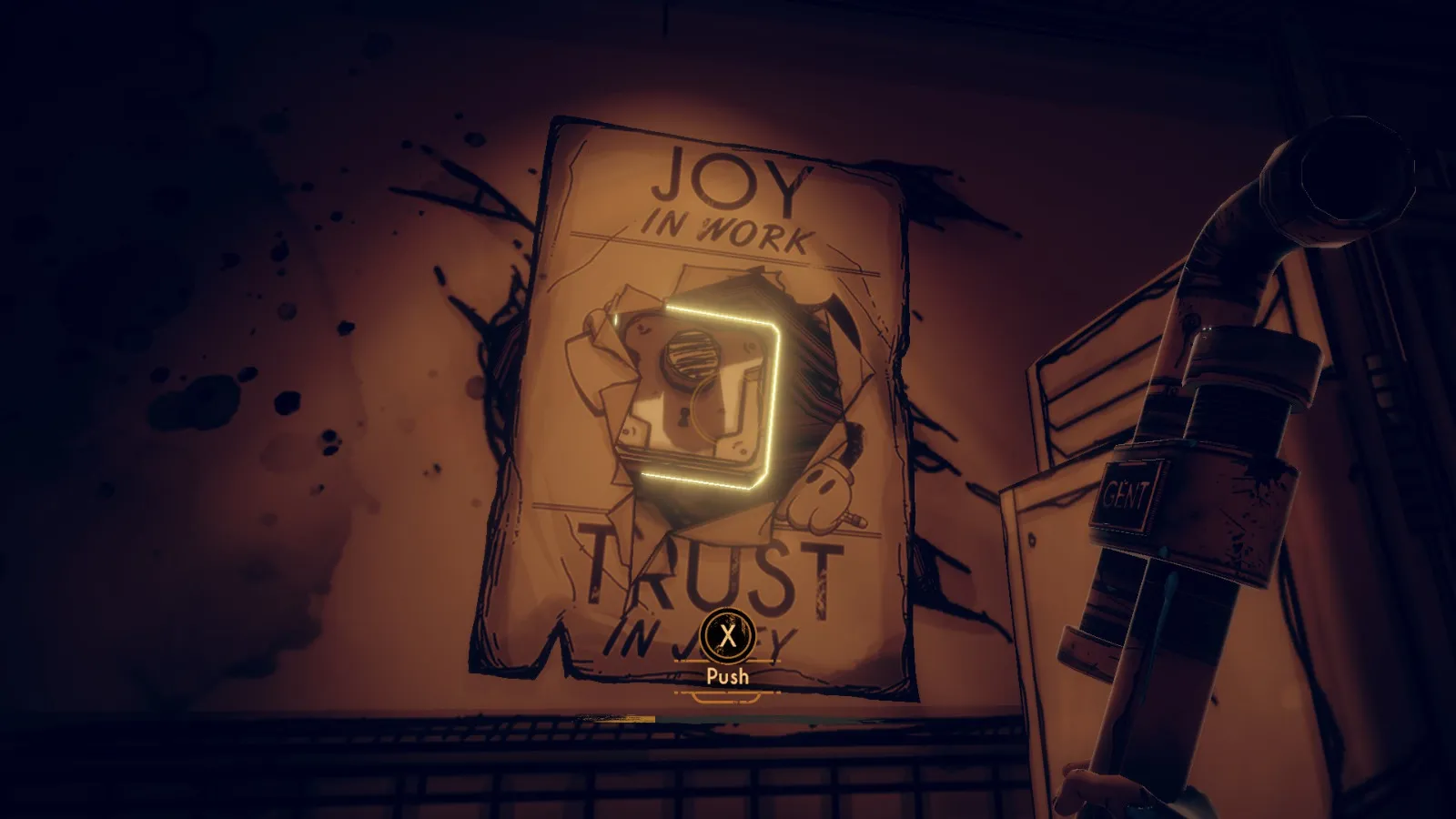 现在从 Bendy 立牌旁边的洞(你找到备忘录 11 的地方)重新进入房间。