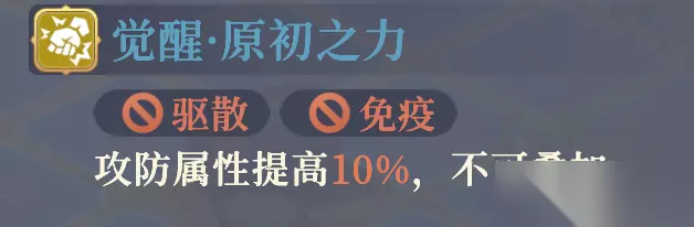 【强力不屈】增益 驱散 免疫 增益,被击败时,可重新投入战斗,[回复35%生命值,可生效1次,不可驱散,无法免疫。 点数不足或本回合再次触发时,会先退出[原初之力],之后不消耗点数,同时重置[强力不屈]计数,使其再生效一次,最后受到[遗忘症]。简言之,处于[原初之力]状态且拥有不少于10层烙痕的沙娜姿,一共可以触发 2次 强力不屈。 5阶右:回能 攻击+3%
