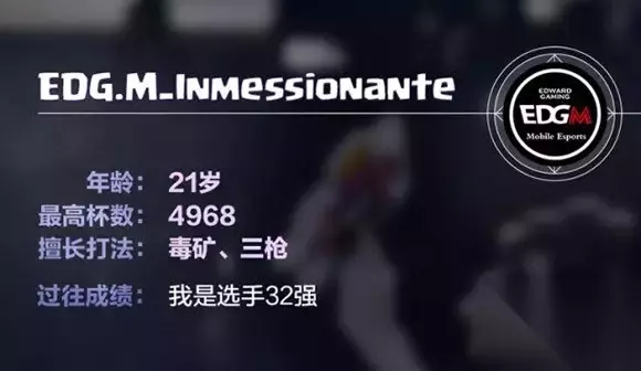 在西班牙语里,Inmessionante是专为歌颂足坛巨星梅西而创,结合了“才华横溢”、“印象深刻”以及梅西的名字。作为梅西的忠实球迷,用偶像的专属来命名自己的ID,EDG.M_ Inmessionante也希望像梅西一样,将自己的CR才华洒满竞技场 作为一名大四学生,Inmessionante和无数普通玩家一样,把CR当成三分钟的娱乐,但当他一鼓作气达成20胜挑战后,便开始寻找更大的挑战。12胜越打越多,《我是选手》杀入32强,比赛中尝到胜利喜悦的Inmessionante一发不可收拾,而EDG.M恰到时机的橄榄枝,让一切水到渠成。 “从业余到职业,这一切对我充满吸引力!”身份上的转变,让Inmessionante兴奋不已,他开始疯狂地拓宽卡池、调整状态以及练习2V2的配合,他说CRL是一个全新的人生起点。“期待和每一个对手交手,总结经验提高自己,目标是希望能帮助战队杀入季后赛!”