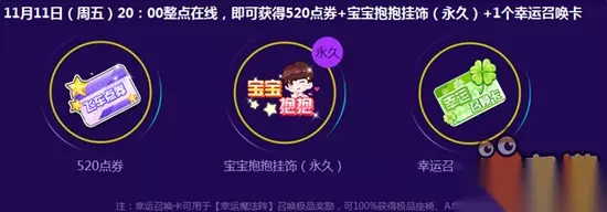 本文汇总了QQ飞车2016年光棍节活动,介绍了光棍节活动的奖励与参与规则,参与活动可领取点券、永久宝宝要抱抱背景、永久宝宝抱抱挂饰等福利,帮助玩家了解活动内容