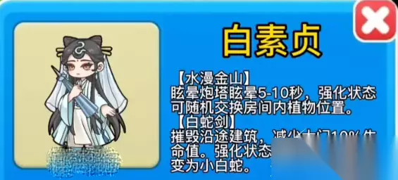 《别惹农夫》白素贞如何解锁 1、解锁【白素贞】需要使用小青进入三个怪物模式,找到带着白色头巾的农夫干掉 2、然后再干掉第二个带着白色头巾的农夫,就可以解锁了。 3、水漫金山-主动技能 普通状态:使用技能,使前方3*3范围遭受水浪冲击,将接触到的炮塔眩晕5s 强化状态:攻击大门时使用技能,整个房间内遭受水浪冲击,将接触到的炮塔眩晕10s,并使房间内植物位置随机交换 4、白蛇剑-主动技能 普通状态:使用技能,向前方释放1道剑气,摧毁沿途建筑,若剑气碰到大门,可减少大门10%生命值 强化状态:使用技能,向前方释放3道剑气,摧毁沿途建筑,被摧毁的建筑将变为小白蛇,房间内炮塔优先攻击小白蛇,若剑气碰到大门,可减少大门10%生命值 以上就是编整理分享的《别惹农夫》白素贞解锁攻略分享全部内容了,可能不少网友还存在其他的困扰,那么该去哪找相关的攻略呢?