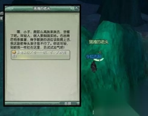 意外失足莫惊慌,落难老头帮你忙!在石台下面的糟老头会给你指一条回去的明路。