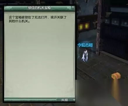在20级小密室难度里的这个锁住的机关宝箱需要解开后面的机关之后才能打开。(只有唐门弟子才能开启,估计关联唐门门派任务)