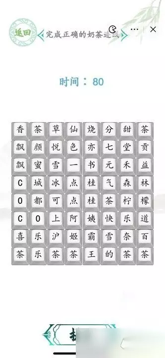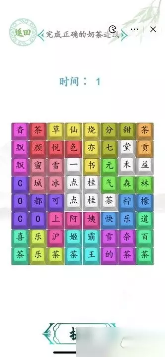 汉字找茬王完成正确的奶茶连线特别应景,这里有各种奶茶名,只有平时经常接触的人才能在最短的时间内完成挑战,这次我们要连成每一句需要用到更多的时间,主要是每一句都特别短,如果大家根据答案图来连的话应该很快就能完成正确的奶茶连线!