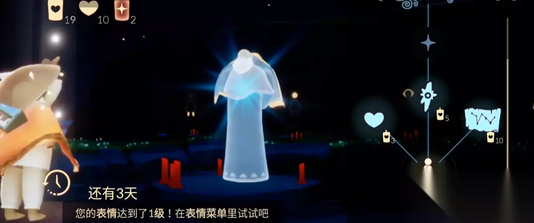 白斗篷的获取需要找到特定的先祖并完成兑换流程。该斗篷由禁阁的灵语者先祖提供,兑换条件为50颗爱心,且需先解锁先祖主干至最上方节点。先祖位置分布在禁阁四层或霞谷城墙最高处。寻找先祖时需注意环境细节,禁阁四层的先祖位于右侧星座图对应的悬浮小岛上,场景较暗建议调高亮度。霞谷路线的先祖则需在规定时间内收集四散的灰色星星状鲲叫记忆。两种路线均需先点燃先祖周围蜡烛激活灵魂,完成记忆收集后护送其返回神庙,才能在遇境星盘永久解锁该先祖的兑换功能。