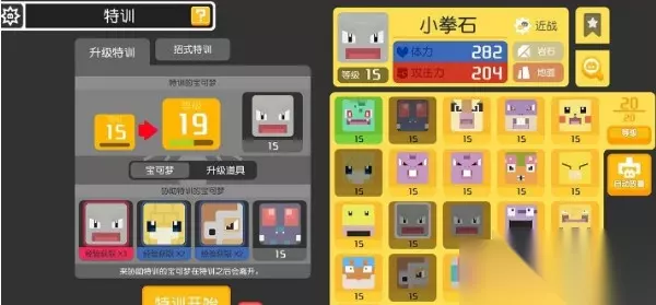 二、玩法介绍 1、玩家选择好初始的宝可梦后根据游戏说明就可以开始闯关了 2、每30分钟增加一格体力,你可以打图刷材料,同时给烹饪锅增加进度,吸引精灵。