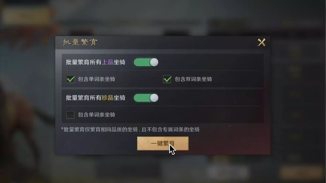 攒了一个赛季的装备和马匹牌子。一口气打造,就是赌概率。成功两个红装。