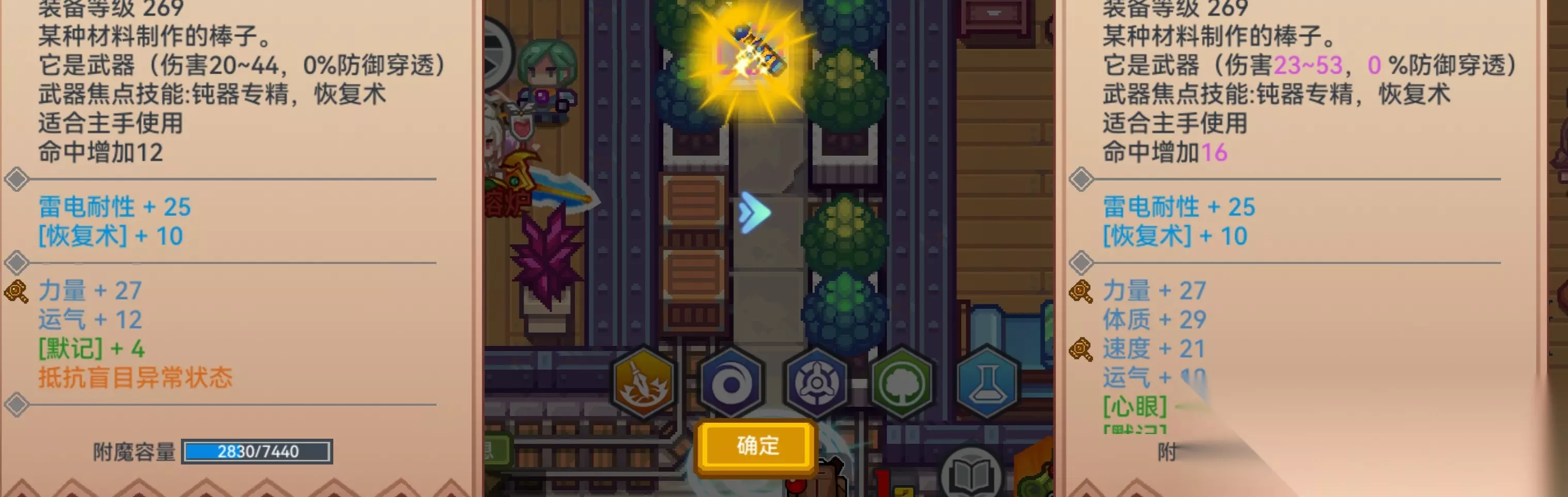 注:魔免,物免,格挡,追伤,暴击,追打/追射及超过上限的词条消不了(这些词条能锤出,但是低概率),耐性可以消,但是较为繁琐,不建议费时间消 融合改造下词条:消完锤后,把装备融合两次直接许愿带锤力量完成超改,一件力量套就算完成90%了
