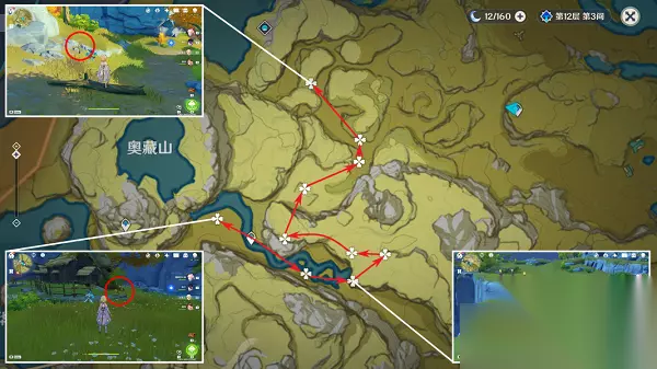 3、来到奥藏山东侧的位置这里,这里能够采集30个,大部分是都集中在一起,而且数量也是很多的,所以这里也是推荐的。