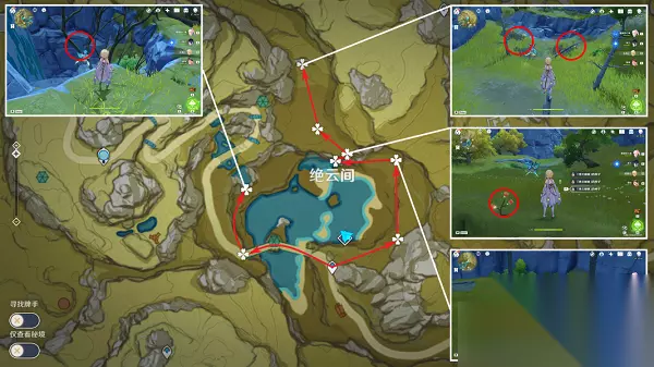 5、在千岩本西侧位置有21个,这里位置是比较分散,而且传送点还比较远,看玩家离这些位置的距离找到合适的地方去找到绝云椒椒。