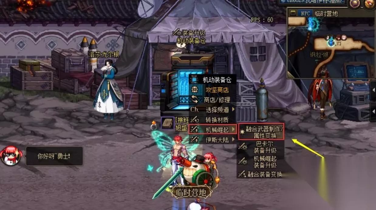 dnf龙之业火如何用 1、首先,到临时营地的机动装备仓,选择“机械崛起”→“融合武器制作/属性变换”;