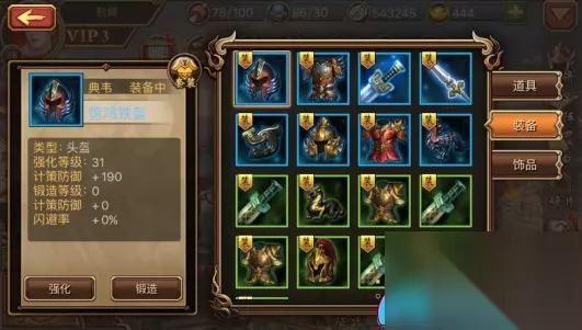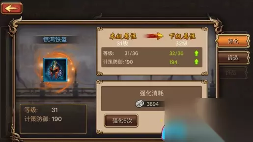 ◆ 装备锻造: 点击锻造界面中的【锻造】按钮,即可进入深奥的锻造过程。在此,你将使用精铁来提升装备的能力。随着锻造等级的提升,装备将得到更高层次的属性加成。不同品质的精铁,根据其稀有程度,提供不同的锻造经验。精铁可通过完成任务或在三国无双中的商店中获得。