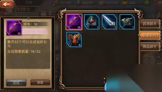 ◆ 装备合成: 漫游于游戏世界之中,你将收集无数零散的装备碎片。一旦这些碎片累积至足够数量,便可通过神秘的合成艺术,将之凝聚成一件完整的装备。