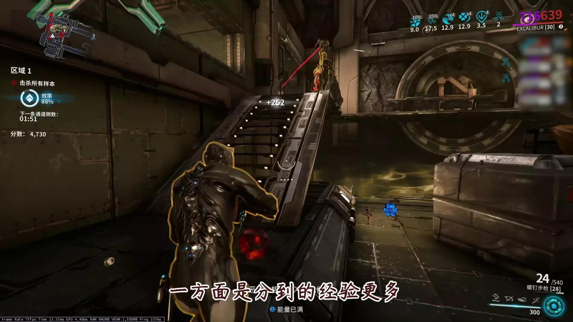 这是玩家分享的《星际战甲》首次体验生存任务的游戏内容,画面中玩家在生存任务里战斗,已收集满10个反应物,还能看到升级、维生系统等战斗相关信息,玩家表示这次体验很畅快。
