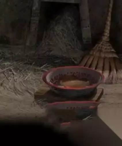 8、在最顶上的竹筐中可以获得煤炭,在厨房橱柜的左边抽屉中可以拿到玉米棒。 9、可以用煤炭放在灶炉中取火,或者用玉米棒在第一个场景中点蜡烛引火。 10、在第二个场景中,要给灶神祭品,拖动人字梯。 11、把人字梯移动到中间的位置,点击贝壳风铃。 12、记住风铃上的符号,可以解开厨房橱柜右边抽屉的开启线索。
