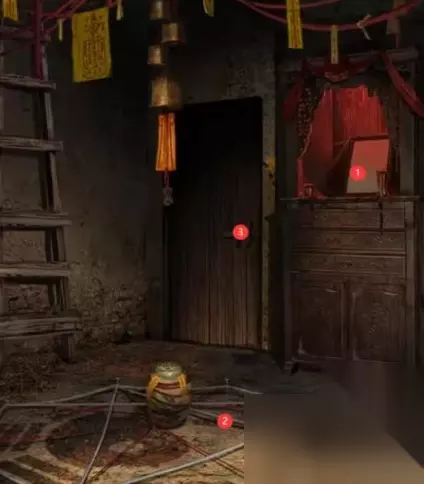 13、在解开之后,可以获得胶布,接着到第一个场景中。 14、修复断裂的电源线,之后把插头重新插上。 15、点击电视调查,可以获得解开抽屉柜的密码是8725。 16、开启后获得贡品,到场景二中的灶王爷的供台位置。 17、放置好贡品之后可以获得火苗来烤干湿度手记。 18、烘干手记后获得新的手记,重新回到第一个场景中,来到浴室镜子前。 19、在这里可以阅读文章,获得右边上锁的木柜子的线索。 20、按照线索点击右边上锁的木柜子后调整解开,可以获得一把钥匙。 21、获得的钥匙用来开启场景二中的最左边的门,到场景三中。
