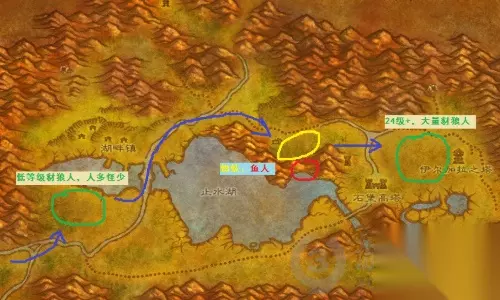 三、41级-43级:同样是浪费两个小时找寻平杀怪地点之后。。选择了继续蹲在血色教堂,具体几个地点如下: 1、塔纳利斯右上方的废土怪:人多到怪一刷出来就死,直接放弃。 2、菲拉斯的熊和狼,豺狼人以及胖子:熊和狼太分散了,效率低。豺狼人营地远程怪太多。 3、悲伤沼泽右侧海岸鱼人,以及下方沼泽里的蜘蛛:鱼人刷的人太多,而且部落为主。