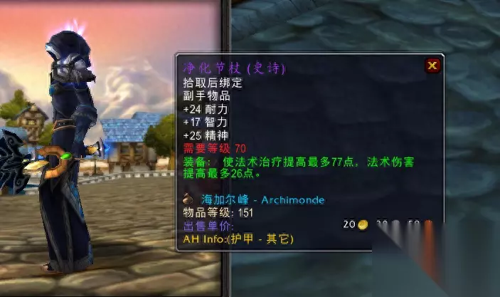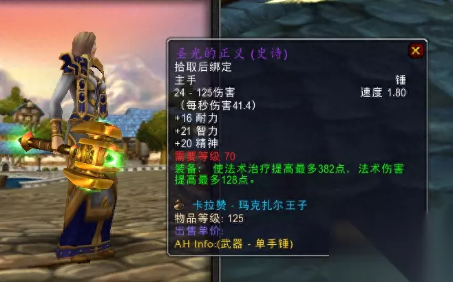在前期牧师的主要选择是卡拉赞王子的掉落:圣光的正义,作为单手武器不加5回反而加精神还是非常少见的,另外由于装等偏低,治疗效果也善法可陈,它只是一件早期的过渡装备而已,目前的KLZ团常常可以两三百金就能入手。