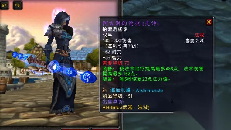 首先是海山阿克蒙德掉落的阿古斯的使徒,单论治疗量和回蓝这把武器于浅水权杖+太阳之王的护符不过在伯仲之间,唯一的优点是阿古斯的使徒还额外提供了15点智力。小探建议已经入手了浅水权杖的牧师就不要考虑阿古斯的使徒了,直接一步到位入手卡拉波水晶之塔最佳,替换曲线更平顺,提升也更大。