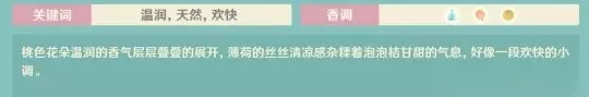 纯净: 薄荷➕粉花➕橘子 桃色花朵温润的香气层层叠叠的展开,薄荷的丝丝清凉感杂糅着泡泡桔甘甜的气息,好像一段欢快的小调。