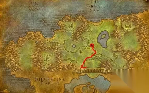 任务地点 玩家可以根据以下的路线来在幽暗城找到黛丽娅的丈夫拉林夫。