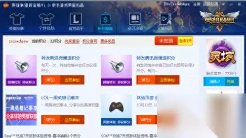 LOL百宝箱 百宝箱里的LOL盒子不但能换肤,而且还能换游戏里的技能图标等,最关键的是还能签到,用积分换QB,英雄联盟点卷等等