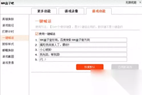 2、盒子有打野计时和一键喊话,打野计时虽然现在的英雄联盟的版本已经有了,但是还是表示支持一下,一键喊话是方便在队友准备被gank的时候喊一下