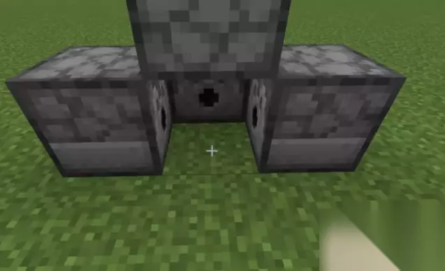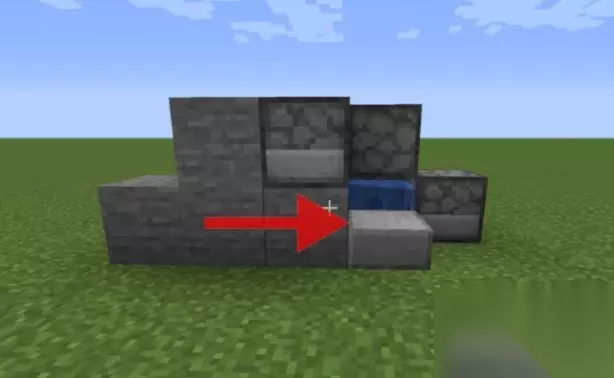 第一步:首先先用三个石块制作一个发射器,在发射器里面放水,再放一个个台阶给他围住。然后在台阶的左边做一个四个方块组成一个中间高两边低的,在这个小整体的右边放一个发射器,方向是图上箭头指着的方向。文字描述不清,那么还是直接上图吧!