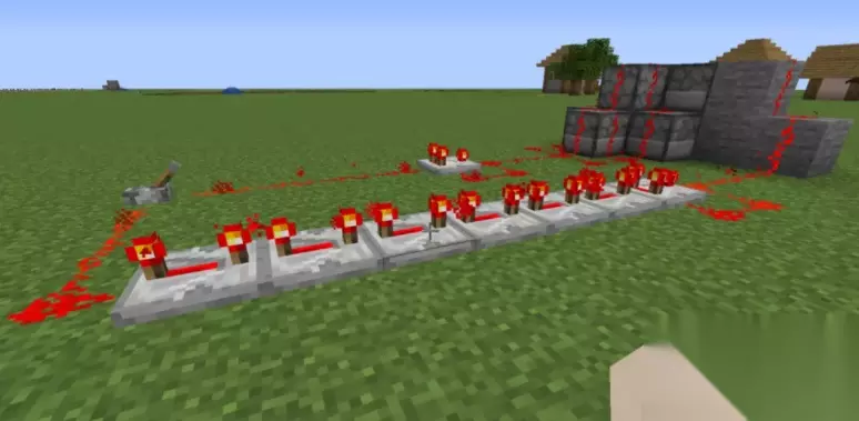 然后在左边的红石比较器后方放上红石中继器,并将其调到最大。其实呢大炮的射程跟红石中继器放置的多少还是有非常大的关系的,当然了放越多威力也就越大,小编一般建议大家放置六个就差不多了,太多我怕你的CPU受不了,哈哈!