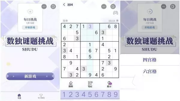 此游戏核心玩法是有趣的数字猜谜,它融合了烧脑有趣的推理玩法,令大家可以尽情沉浸在这个奇妙世界里展开头脑风暴。《猜数狂魔》没有固定的时间计时限制,因此各位可以松弛的展开策略挑战,不必过分紧张。各位可以自由设定,猜数的次数、难易程度等内容,新手玩家也可以从简单的两位数开始,逐一深入挑战更高的难度。游戏明黄的配色,也能够令人倍感松弛和舒适。 手机扫码下载233乐园APP预约 预约订阅最新动态 优先233乐园APP下载 3、《数独谜题挑战》