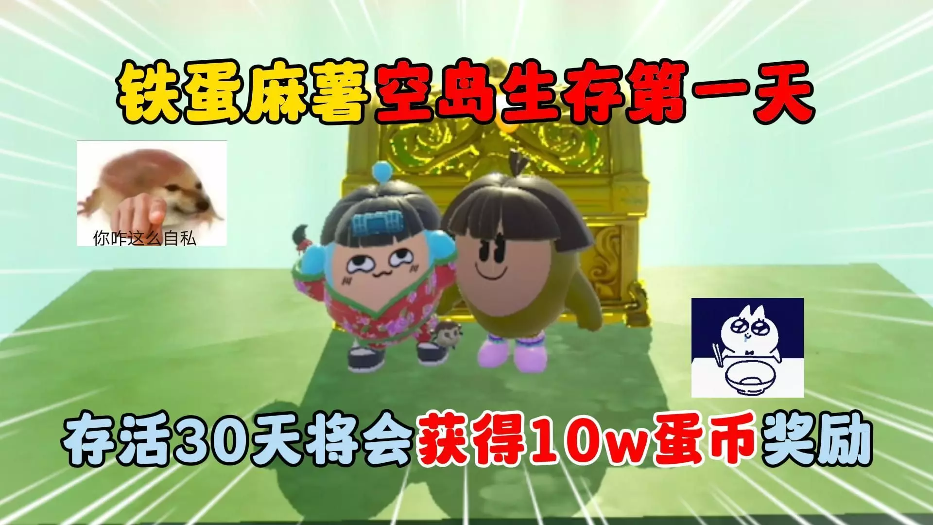 蛋仔派对:铁蛋麻薯空岛生存第一天!存活30天将会获得10w蛋币奖励!