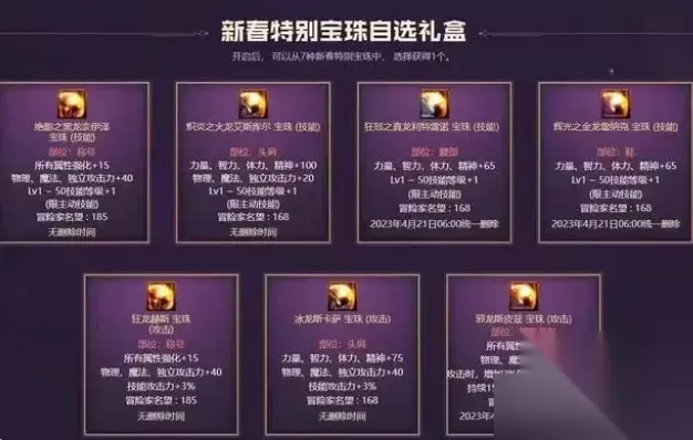 dnf2023年兔年春节套宝珠属性一览 1、绝影之黑龙奈伊泽宝珠(技能)部位:称号,所有属性强化+15物理、魔法、独立攻击力+40,Lv1~50技能等级+1(限主动技能)冒险家名望:185。无删除除时间。 2、炽炎之火龙艾斯库尔宝珠(技能)部位:头肩。力量、智力、体力、精神+100,物理、南法、独立攻击力+20,Lv1~50技能等级+1(限主动技能)冒险家名望:168,无删除时间 3、狂怒之真龙利特者诺宝珠(技能)部位:腰部,力量、智力、体力、精神+65,Lv1-50技能等级+1,(限主动技能)冒险家名望:168。2023年4月21日06;00统一删除。 4、辉光之金龙雷纳克宝珠(技能)部位,鞋,力星、智力、体力、精神+65,Lv1-50技能季级+1(限主动技能)冒险家名望:168。2023年4月21日06;00统一删除。 怎么样,解决的方法是不是很简单呢?其实大家只要在游戏中多探索探索,那么也能够轻易的发现dnf2023年兔年春节套宝珠属性一览的解决方法,如果你在游戏中遇到了其他问题,就多多关注本站的攻略吧,让大家游戏变得轻松。 DNF2020活动 欲望之塔