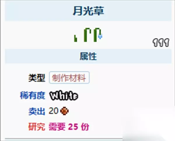 3、月光草只会在夜间开花,会散发出蓝白光的小微粒,在开花时收割会掉落1-3个此草药的种子,玩家可以用再生法杖来增加收割时掉落的种子数量。