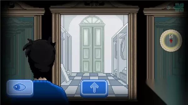 在这个情况下,点击屏幕中间的箭头,视为向下(向南)走了一步,奎恩此时前往到了另一个在他下方的房间。