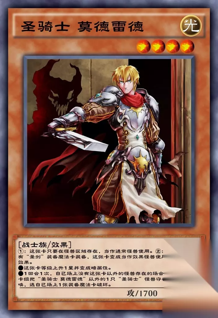 「圣骑士 莫德雷德」本家的优质下级怪兽,本质上是1卡R4或R5,具体看手牌中的圣剑装备魔法卡数量。